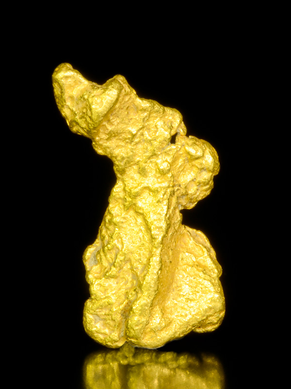 Rounded nugget of yellow-metallic native gold with remnants of crystal form partially visible.Rounded nugget of yellow-metallic native gold with remnants of crystal form partially visible. Native gold is the term for naturally occurring gold.