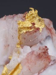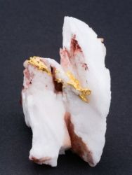 Překrásný vzorek ryzího zlata na křemeni z nového nálezu na lokalitě Aouint Ighoman v Maroku.Překrásný vzorek ryzího zlata na křemeni z nového nálezu na lokalitě Aouint Ighoman v Maroku. Seskupení lesklých krystalů zlata pokrývá drobně krystalované křemeny. Velice estetický vzorek s velkým obsahem zlata. Křemenem prochází několik přírodních trhlin - vzorek je stabilní, ale je potřeba chovat se s jistou opatrností při manipulaci s ním.