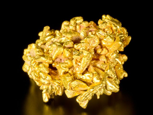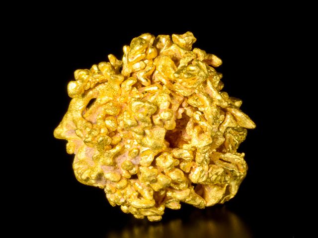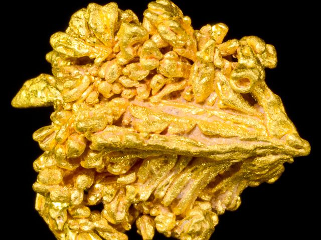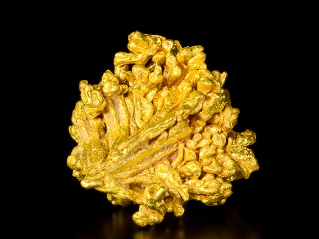 This fine gold specimen (16.5 g) is out of a completely new find from 2015 that has rapidly made a name for itself as a source for world class gold specimens. Best color, filigree growth and a vibrant sheen are trademark for this locale. No damage. With hoppered growth, sharp crystals and a 3-dimensional structure this is a brilliant example for the high quality of Brazils new gold deposit - one that has already been closed by police forces just several months after its discovery.