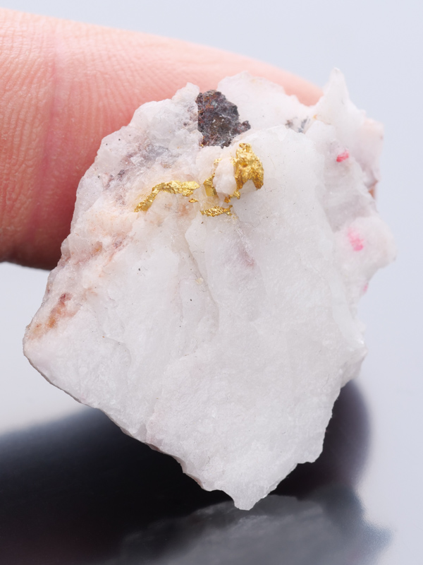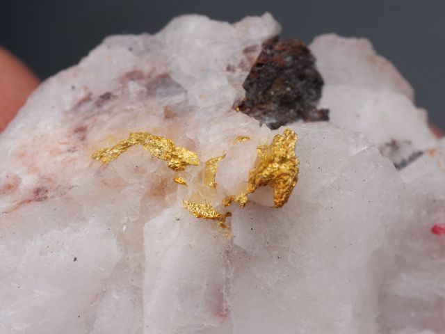 This piece features a thick, sturdy, brilliantly-colored group of gold crystals perched dramatically on a knoll of quartz.This piece features a thick, sturdy, brilliantly-colored group of gold crystals perched dramatically on a knoll of quartz. It is very aesthetic. It is complete and showy on both sides.