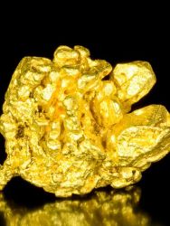 This piece is a rare crystallized gold from the old Victorian goldfields - Talbot. It shows a large, robust, 3-dimensional crystal atop a nugget base. Such pieces are rarely found. Crystals of this size are rare for gold of any locality. No damage.