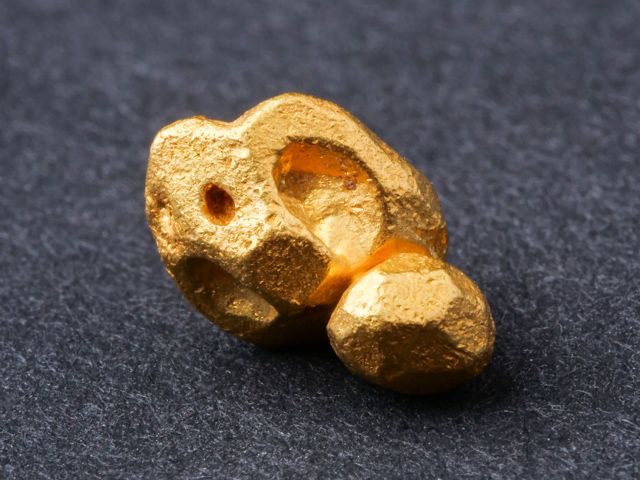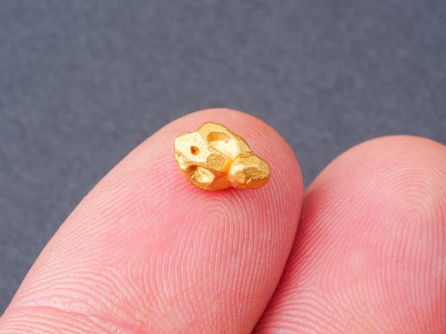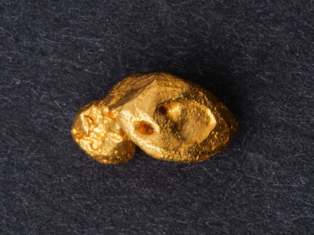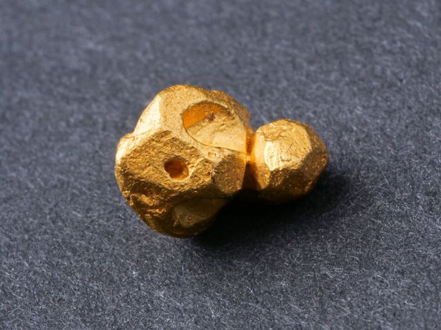 Vzorek krásně krystalovaného zlata (1,36 g) z venezuelské lokality Ikabaru. Nuggety zlata jsou zřídkakdy krystalovány v zachovalé podobě (vzorky bývají ohlazeny). Tento luxusní zlatý vzorek má viditelné krystalové hrany viditelné ze všech pohledových stran. Investiční vzorek z Venezuely.