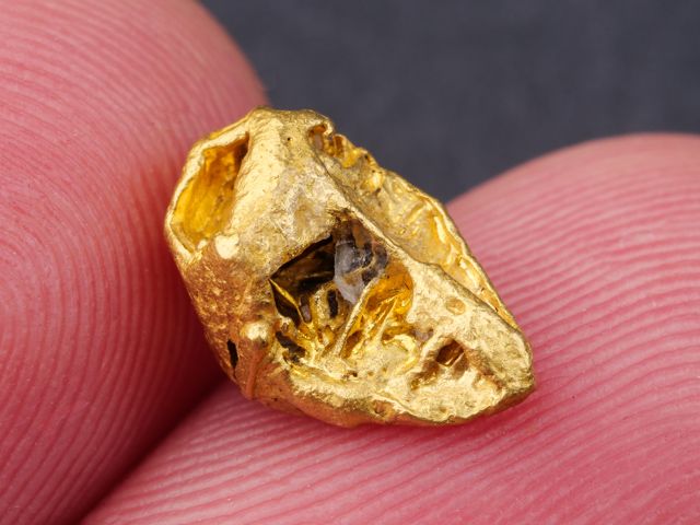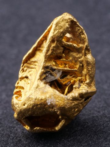 A colorful fine gold specimen from Ikabaru, Venezuela. It weighs a hefty 1.69 grams, so it feels like a solid gold crystal. This excellent gold crystal speaks for itself! It has very sharp edges and has a distinct textbook shape. This sharp, stunning, and elegant crystal is a killer specimen and will display beautifully.